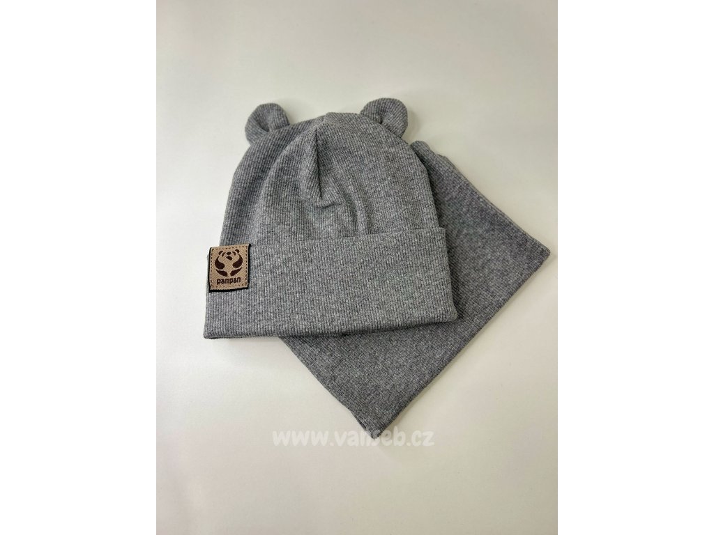 Moderní žebrovaná čepice s oušky a nákrčníkem ve stejné barvě.