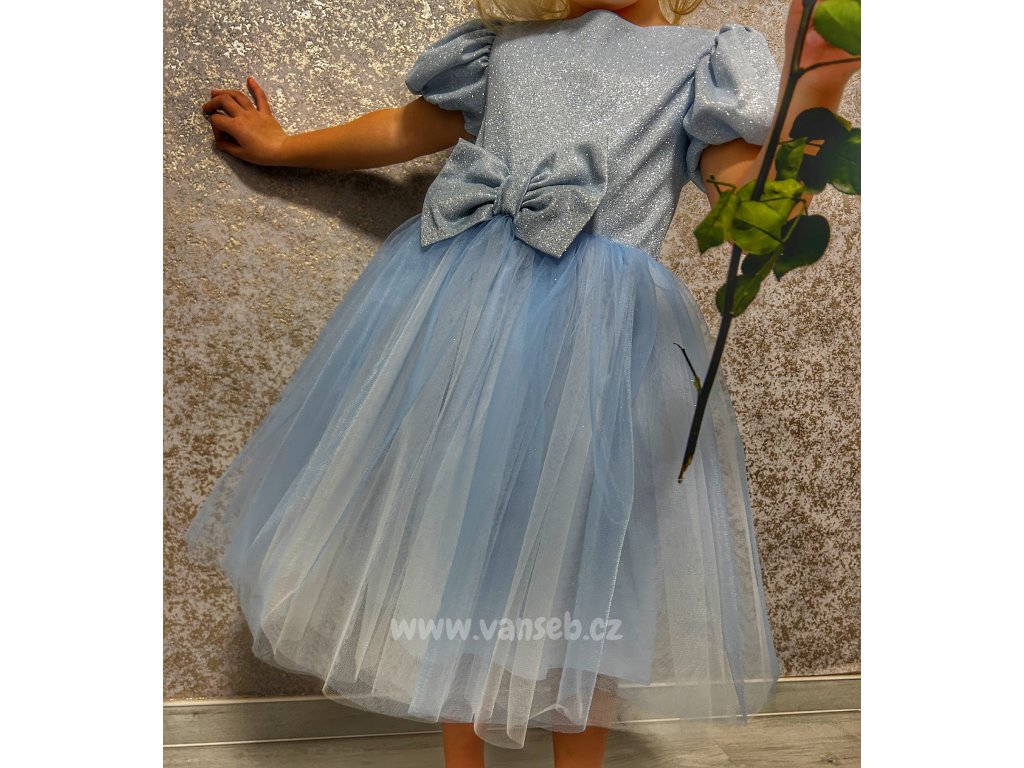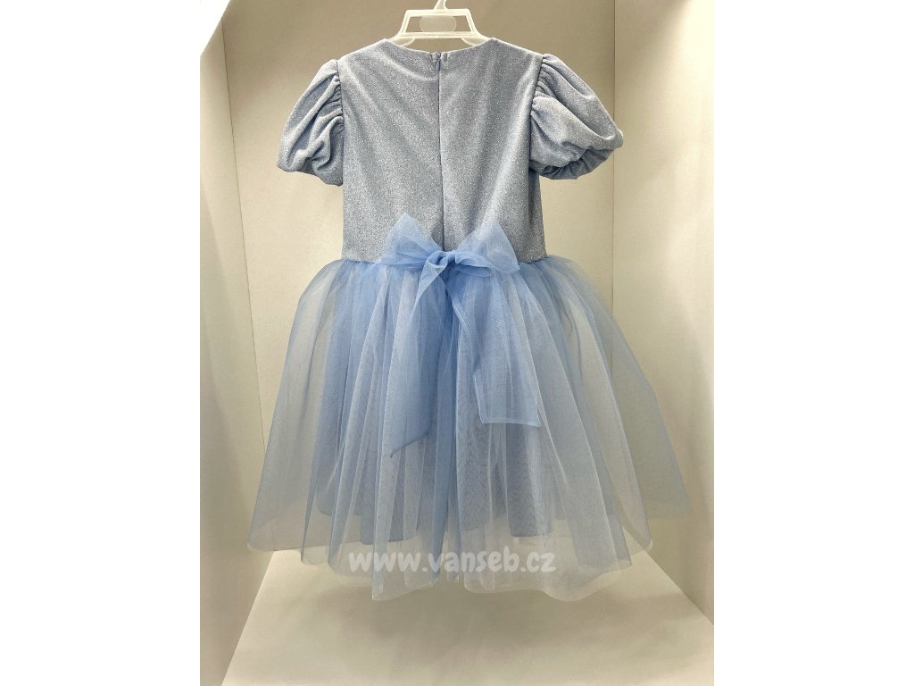 Luxusní šaty zdobené třpytkami, krátký rukáv - jemný a příjemný materiál uprostřed třpytivá mašlička. Krásná nadýchaná tylová sukně, která drží tvar a šaty vypadají oblečené nádherně. Vhodné na svatby, oslavy, křest prostě pro jakoukoliv příležitost.