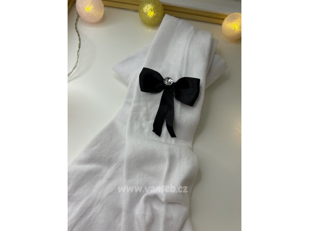 Krásné punčochy s mašličkou a kamínkem, které dokonale doplní váš outfit. Jsou příjemné, pevné a zároveň teplé. Zazáří v nich každá slečna.